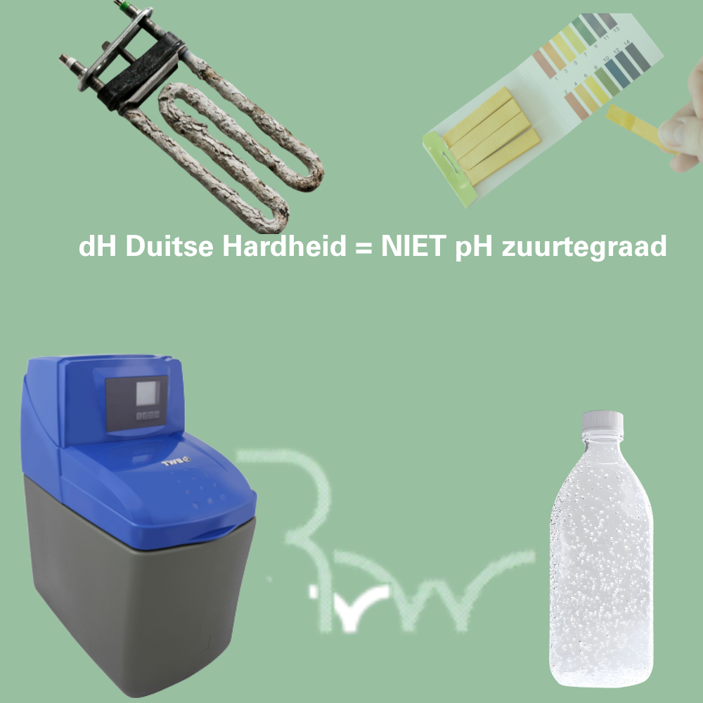 dH staat voor Duitse hardheid en geeft het calcium (kalk) gehalte van het water aan. Een waterontharder haalt calcium (dH) en magnesium uit het water.
